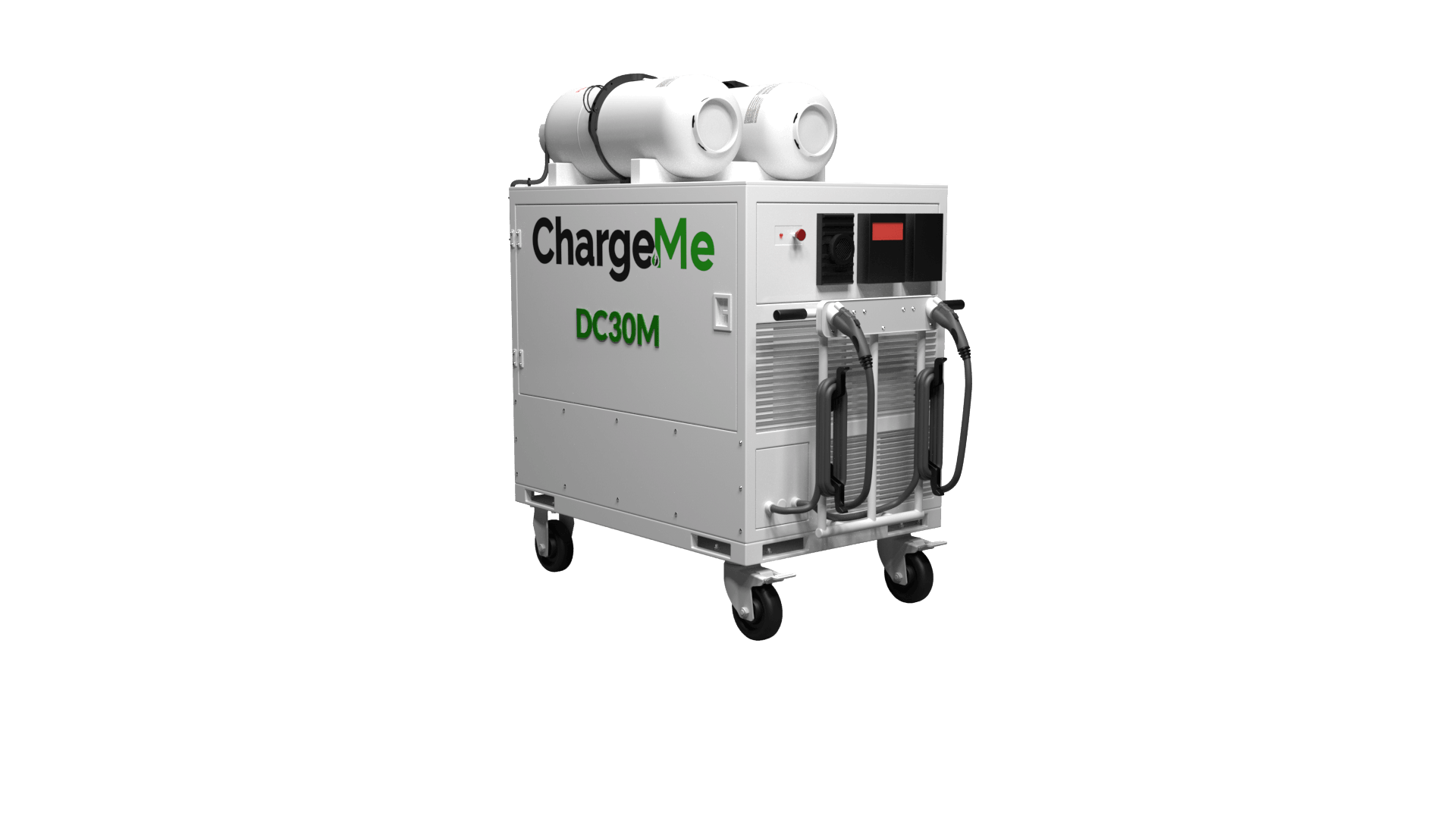 The Charge Me DC 30M Direct Current (DC) Off-Grid Fast Charger is a 30kW output DC fast charger ideal for auto dealerships, auto rental companies, hotels and C-stores, where the rising number of electric vehicles needing a charge require a mobile charging unit that can be wheeled around a lot with ease. The DC 30M is