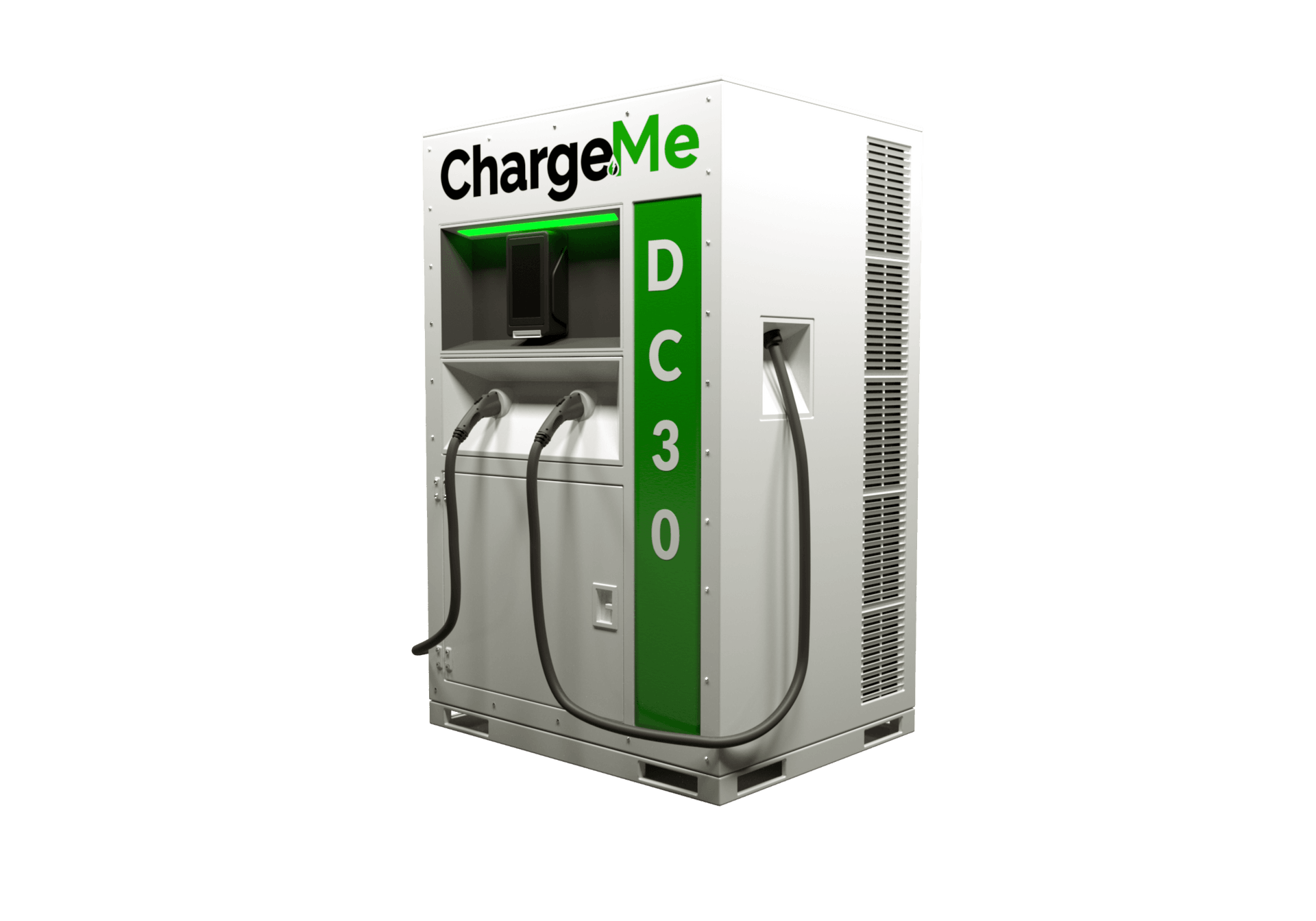 The Charge Me DC 30M Direct Current (DC) Off-Grid Fast Charger is a 30kW output DC fast charger ideal for auto dealerships, auto rental companies, hotels and C-stores, where the rising number of electric vehicles needing a charge require a mobile charging unit that can be wheeled around a lot with ease.